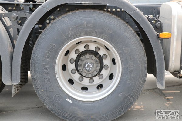 轮胎使用的型号是12R22.5 18PR,可以选装铝合金轮圈,对车辆的动力性有一定的积极作用,而且使用带有康迈油润滑轮端,换油周期长,降低了维修成本。