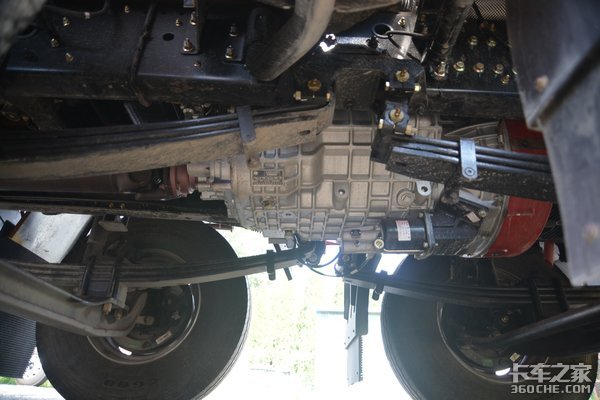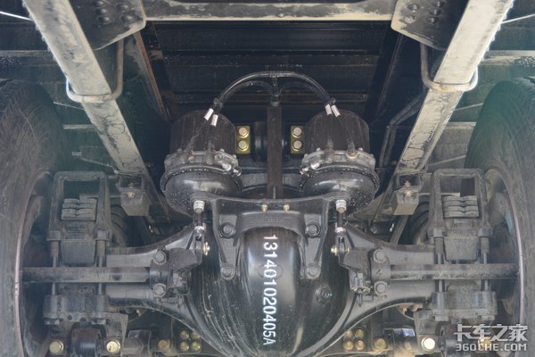 这款车底盘后桥允许载荷18000(二轴组)KG,速比3.7的11.5T汉德425单级桥,弹簧片数是3/3/4,相比过往车型,在自重上有所降低。