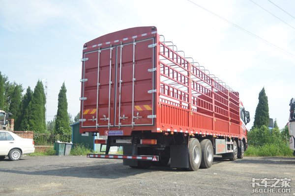 这款车货箱形式为仓栅式,货箱尺寸为9500mm×2450mm,轴距为1800+4600+1350mm,主要适用于日用工业用品运输、农副产品运输、零担运输及绿通等。