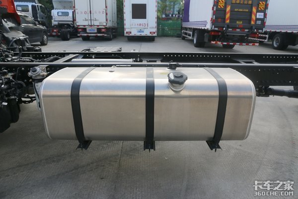 油箱方面,实拍车型采用200升油箱,同时可选400升容量铝合金油箱供卡友选装。