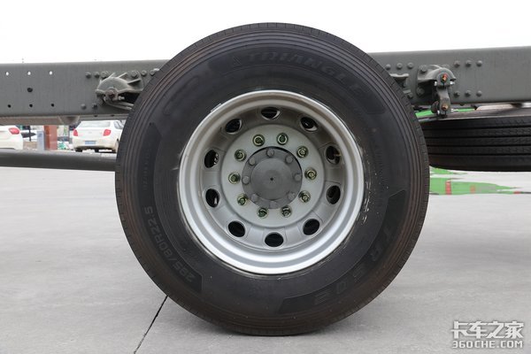 轮胎选用的是295/80R22.5规格的三角牌轮胎,三角轮胎也是目前国产轮胎中保有量比较大的品牌之一。