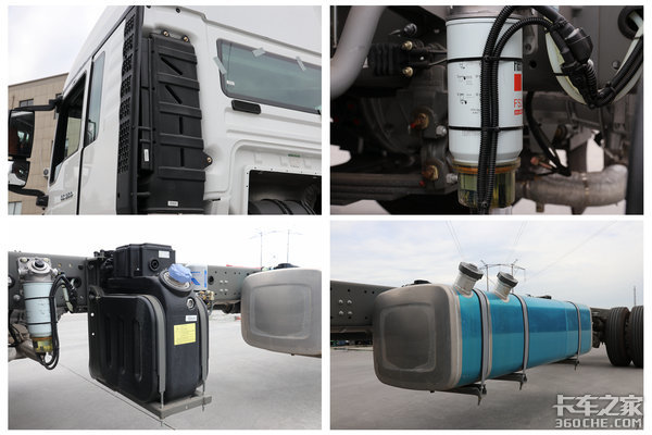 另外,这款车选装了寒区包,发动机进气道、粗滤、油箱以及尿素罐等都带有加热功能,可以保证在寒冷的天气下,底盘零部件依然可以正常工作,而且600L双腔油箱,主副油箱可切换,冬季跑北方可以加不同标号的柴油,节省燃油成本。