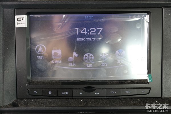 中控台上镶嵌了一块大尺寸MP5,除了常见的视频、音乐功能以外,还有非常实用的四路监控以及车载导航,查看非常方便,由于实拍的这款车还没有匹配货厢,所以后方摄像头信号暂未接入。