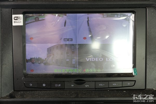 但是卡友们都知道,在装上后方货厢之后,整车的盲区非常大,快递快运需要经常靠台装卸货,在靠台作业时一不小心就会发生剐蹭,为了解决这个问题,这款车配有四路摄像头,基本上可以达到360度无死角,大幅提升了行车安全性。