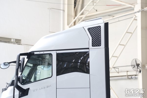 整个驾驶室外观覆盖件比较光滑,都是为了降低行使风阻,提升燃油经济性。流线型的外形配上一系列的动力链优化,黄河X7相比现在的汕德卡、T7能降低10%-15%的油耗。