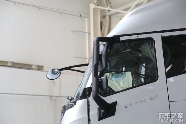 由于驾驶室造型的影响,前照地镜支架比较长,经过实际感受,黄河X7的驾驶视野和普通的平头卡车差不多,相比长头卡车视野会好一些。两边后视镜的设计和平头卡车一样并无变化,但是后视镜的造型略有改变,相比之前的后视镜也是起到了降低风阻和风噪的作用。