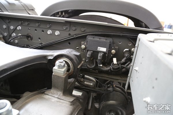 此外,底盘还升级了电气化架构,驾驶室后方的龙门架上有挂车处理模块,用于检测挂车电器系统,提升主车和挂车之间的一致性。在车架的尾部有主车电气处理模块,主要是用于检测主车灯光之类的零部件。黄河X7有一项功能就是一键检测全车灯光,只需要按动遥控钥匙上的按键即可开启所有的灯光,不需要两个人配合一项一项的检查。