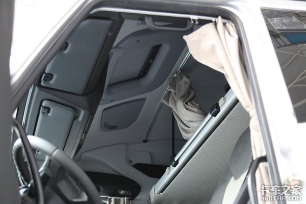 黄河X7的驾驶室本体还是源自曼技术,只不过A柱的倾斜角度做了一些变化,使得整个驾驶室造型像一个子弹头一样。当然了这一改变带来的是驾驶室内部空间略有压缩,顶部的储物空间不如常规的平头卡车。