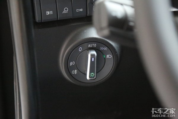 实拍的车型挡把设计在转向柱上,也就是我们常说的怀挡,目前使用怀挡的卡车有斯堪尼亚、奔驰等进口车。怀挡的设计可以提升操作便利性,驾驶员只需要拨动手柄就可以完成挂挡的动作,相比之前的娃娃头设计进步很大。