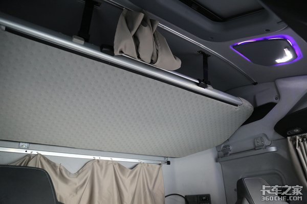 另外还配有一键启动、自动空调等等,这些都是提升便利性的配置,包括中控大屏,内置了车联网系统,也可以通过大屏调节车内氛围灯的亮度、颜色等等,这一配置目前在国产卡车甚至进口卡车中都是比较少见的配置。