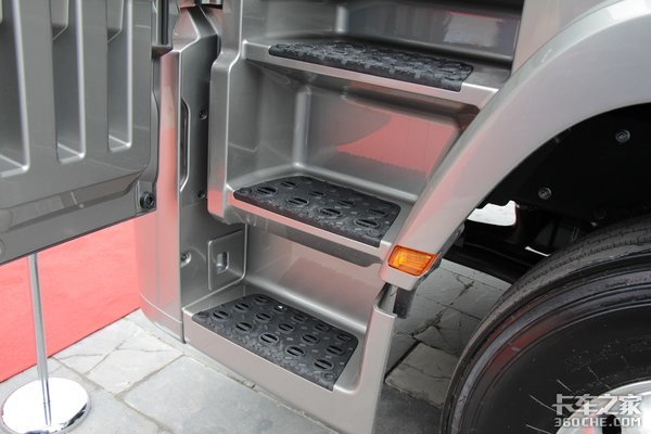驾驶室采用三层阶梯式宽体脚踏板,由下及上宽度逐渐增加,与此同时车门下方的宽体护板,可以减少雨雪天气下行车污渍对于脚踏板美观度的影响。