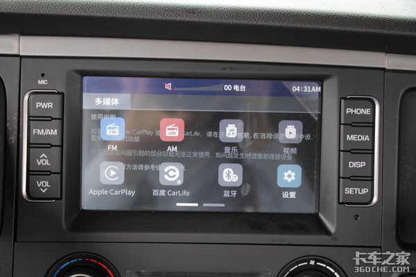 仪表盘中部采用了大尺寸液晶仪表盘,便于驾驶员可以及时了解油料、气压、电瓶等部件的工作情况。