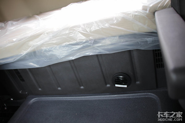 关于卧铺区域,创虎的卧铺尺寸约为0.8m,已经能够满足大多数驾驶员的需求。另外,卧铺正下方还带有可以推拉的储物抽屉,可以选配车载冰箱,增加车内生活便利性。
