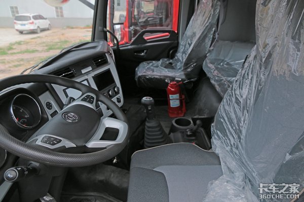 驾驶室使用的是四点悬浮设计,减震效果比较好,提高了乘坐的舒适性。中控台整体比较偏向于驾驶员方向,方便驾驶员进行相应的操作,符合人机工学理念。