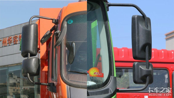 两车都采用了独立后视镜分体设计,主镜与补盲镜各自连接在后视镜杆上,这点倒是对砂石料运输的工况比较友好,关键是后期损坏要修复起来成本较低。