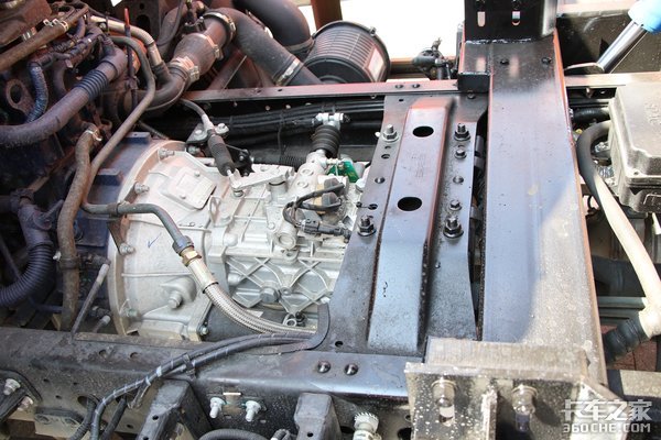 与发动机相匹配的是法士特C6J45TB变速箱,前进挡为6个,倒挡数为1个。同时使用铝合金的壳体,可以有效的降低车辆自重,达到轻量化的目的。