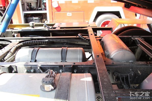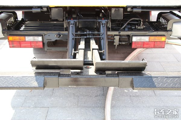 车尾还有拖车臂,这款车救援时,可以在车上装载一辆小车,还能在后面拖一辆故障车,能够提升作业效率。因为后部拖车臂受力比较大,所以车位最后一根横梁经过加固。