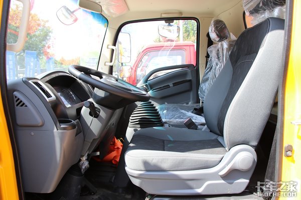 这款车搭载了宽体驾驶室,驾驶室内饰采用之前经典布局,浅灰色的颜色设计,并且车内座椅为全新设计,皮质与织物面料相结合,舒适度和支撑度都不错,能带给你轿车一样的包裹感。