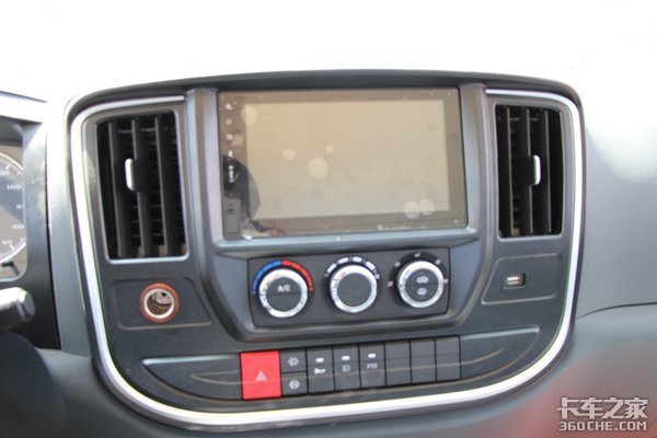 中控区域的布置十分规整,用到了银色饰条对中控台进行了勾勒。中间多媒体大屏集成了导航、收音机、视频播放以及蓝牙等功能,下面的空调旋钮的设计贴近乘用车,十分方便操作。