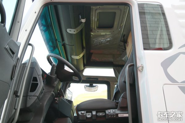 其他方面,方向盘依旧采用四辐式的多功能方向盘,集成了行车电脑控制和多媒体控制,同时拥有电动天窗、电动遮阳帘、多空调出风口、车载冰箱等。中控台位置紧靠主驾驶,布局紧凑,功能按键丰富。整体表现无愧于其高端重卡的定位,奢华感展现得淋漓尽致。