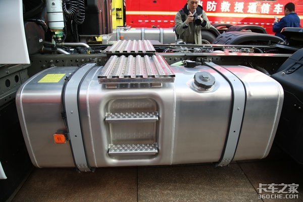 与该发动机相对应的油箱容积则为600+200L,油箱侧面设计有方便车主上下工作台的踏板,顶部则有用来防滑和保护箱体的护板,设计显得很贴心。