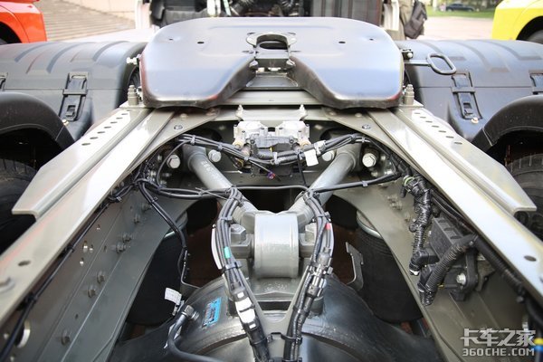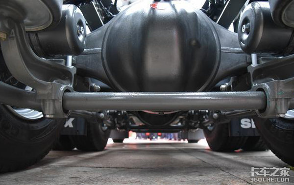 车桥方面,搭载的是重汽自主研发的型号为MCY13BES的后桥,后桥速比为3.7,最高车速能达到110km/h。重汽的MC车桥主要优势在于先进的轻量化设计,减重的同时依然能满足不同的工况需求。