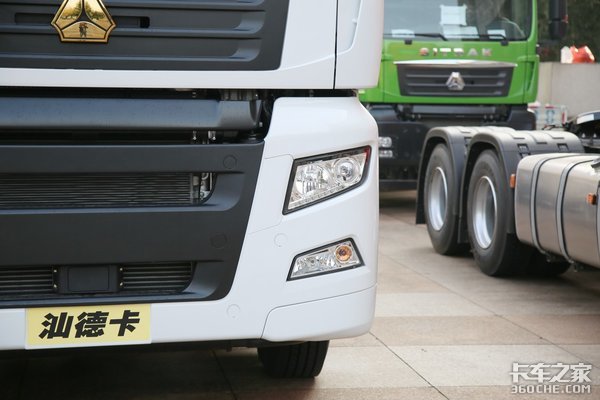 相比老款汕德卡车型,全新的汕德卡C7H前脸上的LOGO、汕德卡英文字母、装饰条等喷涂成金色,显得十分亮眼。大面积熏黑的进气格栅配合造型凌厉的大灯组,整体造型看起来霸气硬朗。