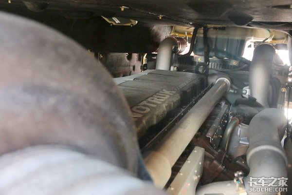 动力方面,实拍的这款豪沃TH7搭载的是采用曼技术加持的中国重汽MC11.46-50发动机,11.5L的排量,符合国五排放标准。最大输出功率341kW(460马力),扭矩达到了2200N·m。与之匹配的是中国重汽HW12-WY手自一体变速箱。