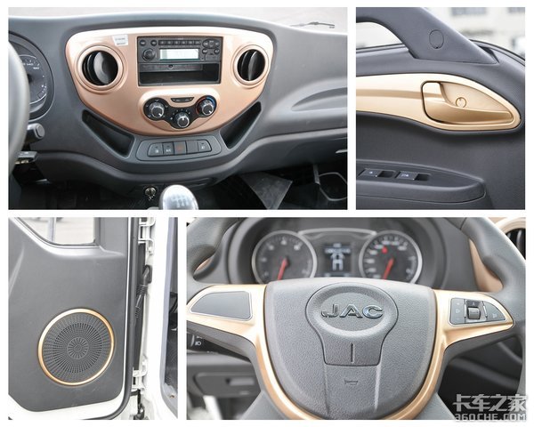 在内饰设计方面,江淮轻卡一直走在前列,凭借多年的轿车设计经验,这款康铃J6驾驶室在内饰设计上依然走“家轿”的路子。整个驾驶室内使用“土豪金”镀铬装饰,镶嵌在黑色材质中的“土豪金”显得特别有高级感又不至于过度浮夸。