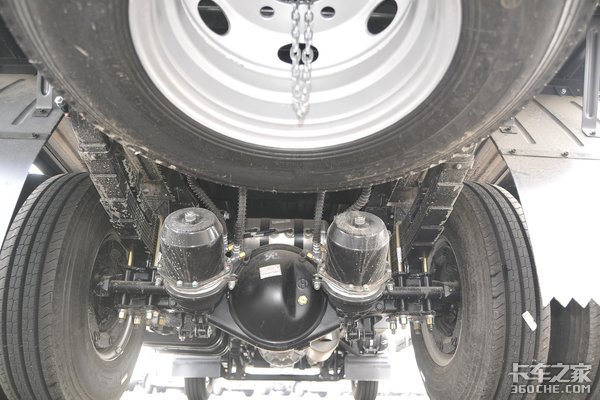后桥采用的是美桥的5T后桥,速比为4.875,板簧数为7+6片,再配以规格为7.00R16LT的成山轮胎,完全能够满足后桥的承载设计。