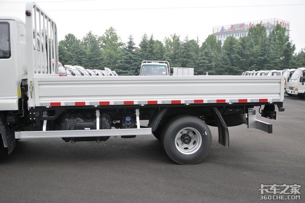 实拍该车装配规格为3850x2080x400mm的栏板货箱,能够应用于建筑材料、农副产品等运输场景。