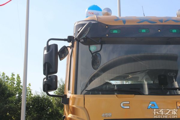 驾驶室采用了高顶驾驶室,并配有导流罩、扰流板,可以有效减小风阻。上面的汉字LOGO彰显其身份,喇叭被安装在驾驶室顶部。