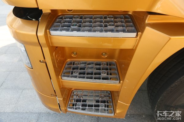 驾驶室采用三级镂空式蹬车梯,在防滑的同时也可以将驾乘人员鞋子上的泥土划掉,保持驾驶室内干净整洁。