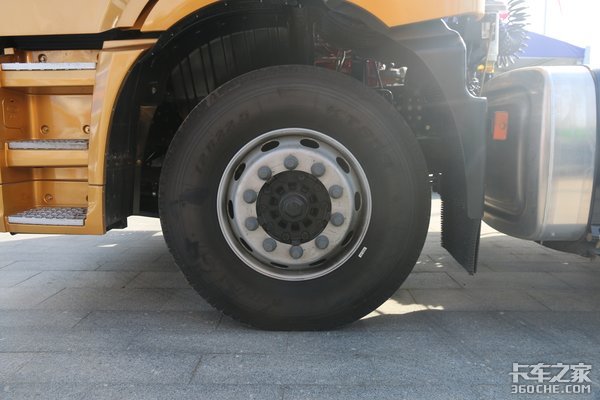 轮胎采用12R22.5规格轮胎,此类规格在重卡领域广泛使用的。