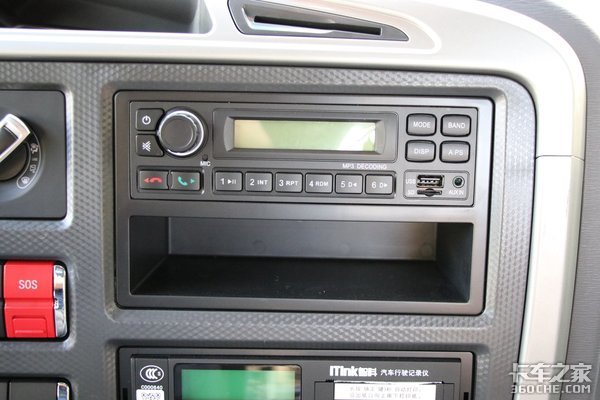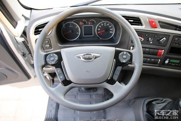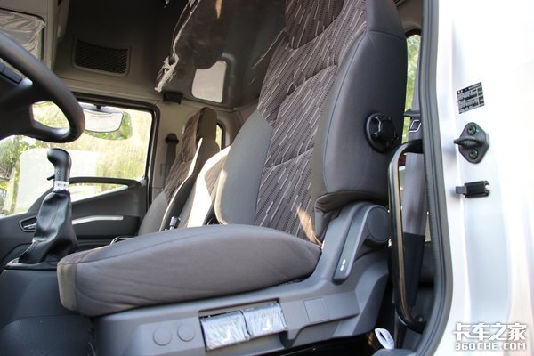 实拍车型采用三座排半布局,主驾采用气囊减震座椅,并且支持多种角度调节,配合右侧扶手,能够让驾驶员获得更加舒适的驾驶坐姿,降低驾驶员的疲劳强度,提高运输效率。