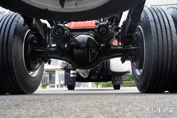 实拍车搭载378铸造桥,速比为4.875,承载结构为3+7多片簧承载结构,轮胎为赛轮品牌,规格为275/80R22.5。这个型号的真空胎目前也在同级别卡车配置中越来越常见。