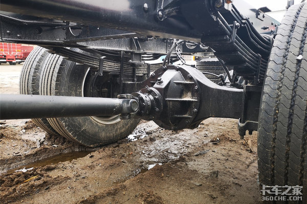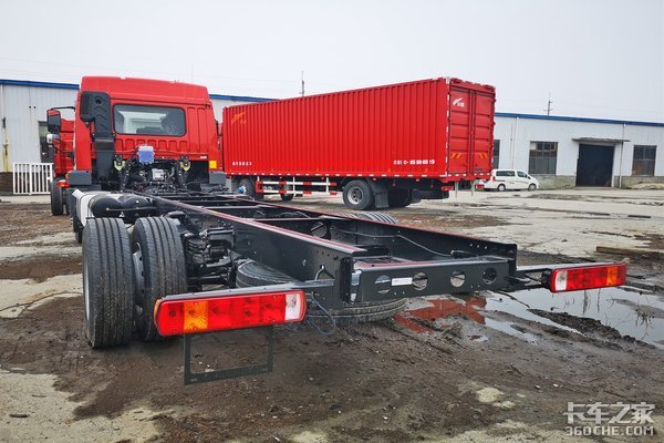 这款车型车架高度为237×75×7mm,385改进铸造后桥,速比为4.333。悬架的板簧采用7/10+3,这样的配置搭配非常适合跑国道、高速,在动力良好的情况下,还能保证一定的承载能力。