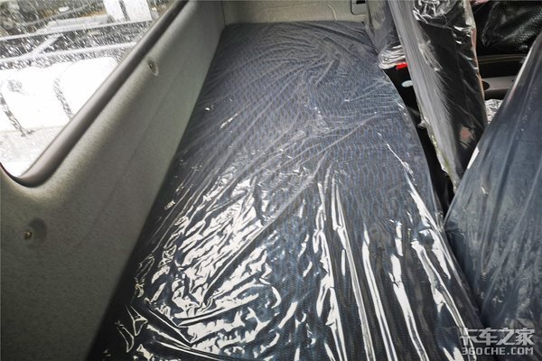 驾驶室卧铺选用布质材料,整体柔软度和透气性比较好,虽然卧铺面积不是太大,但睡一个90公斤的壮汉完全不成问题。而且后窗尺寸较大,会给室内带来更充足的光照。