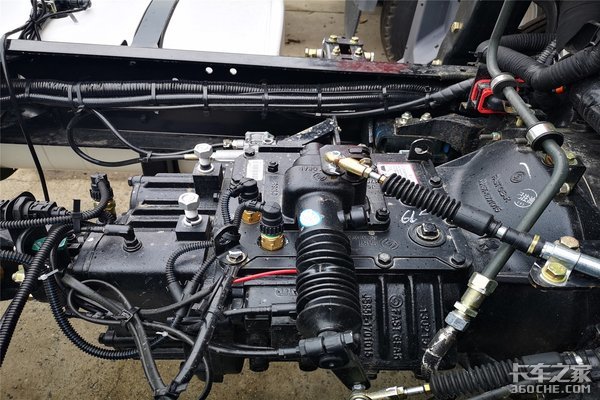 变速箱是匹配的手动8挡法士特变速箱,型号为8JS85C,最高挡为超速挡,速比为0.75,次高挡为直接挡。