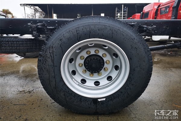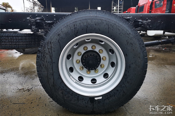 轮胎是装配了275/80R22.5型号的真空胎,此型号在中卡载货车领域广泛使用。