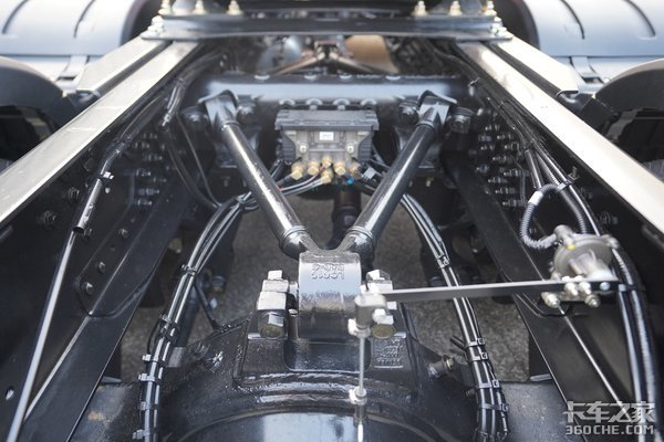 后桥采用解放457升级冲焊桥,内部为单级减速结构,长换油里程能达到15万公里,速比为3.417。前后车桥均采用FAG舍弗勒的封闭式润滑轮端,零件质量可靠,车桥故障的概率大大降低。