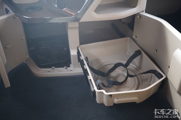 JH6+的生活舱简直就是迷你版的家,宽敞的起居空间,厨具、独立卫生间、上下卧铺、冰箱、空调等设施一应俱全,这绝对是颠覆传统驾驶室内部的设计。