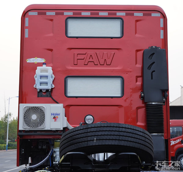 生活舱后面上、下部各有一个窗户,便于采光,还能看到空调外机,说明这款车带有独立冷暖空调。