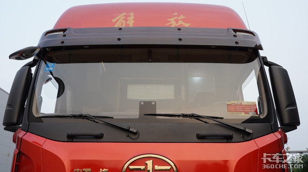 前脸与JH6相差不大,后视镜采用一体化设计,带有电动调节和电加热功能,保证驾驶员在雨雾天气行驶时实现不受干扰。随车还配有补盲镜,有效缩小驾驶员视线盲区。