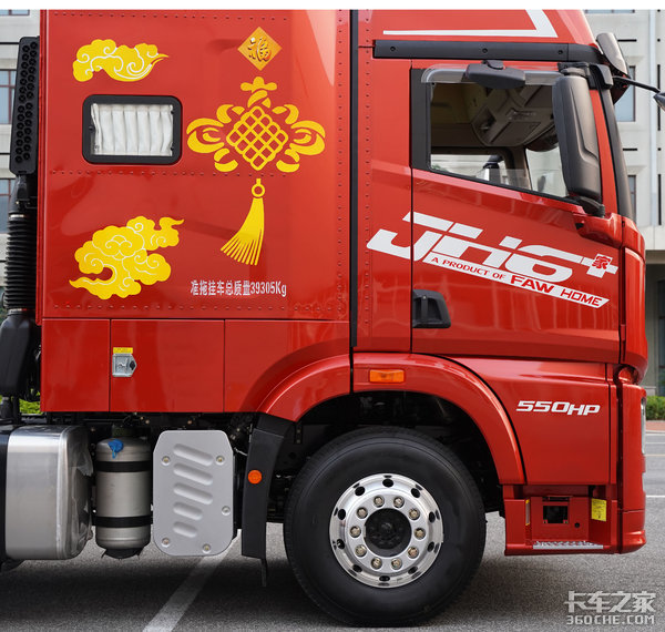 这款车搭载的发动机是解放动力CA6DM3-55E52,排量13L,符合国五排放标准,也可选装国六发动机,最大功率是550马力(407kw),最大扭矩达到2600牛米,最大扭矩转速区间为1200-1300转。