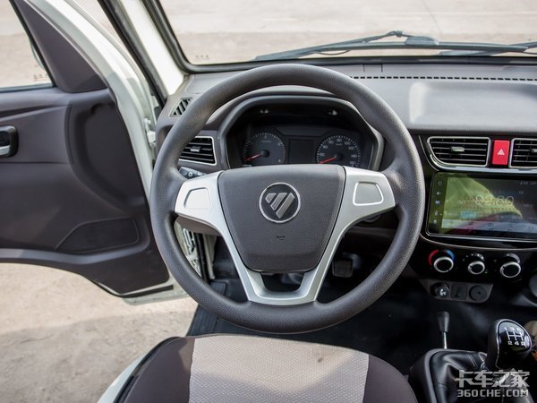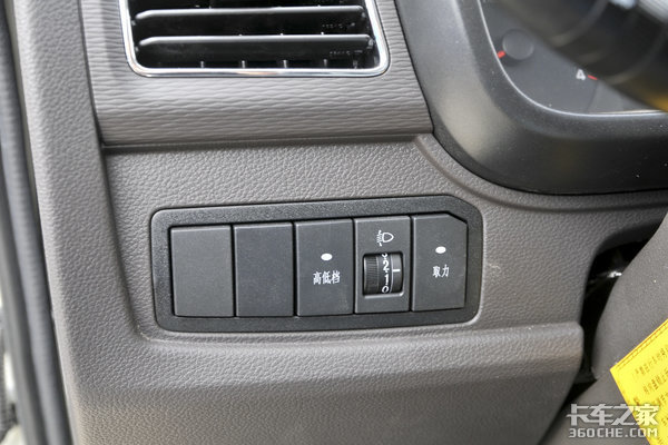 方向盘左侧布局有高低挡、大灯高度调节、取力器开关,在动力需求较大时,可以通过低挡开关获取更大轮上驱动力。