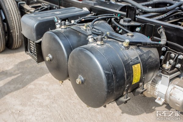 车架右侧为蓄电池和储气筒