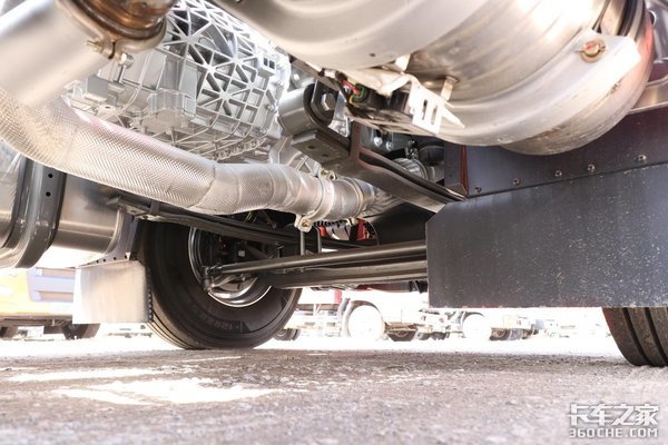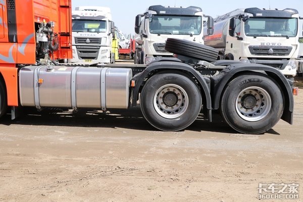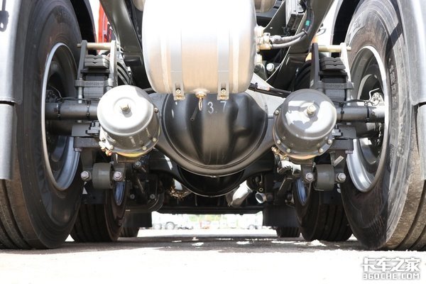 实拍车型的驱动方式为6x4模式,后桥搭载了MCY11后桥,速比为3.7。同时根据不同需求,还可选3.36等多个速比。