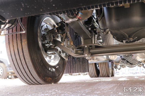 汕德卡G7还具备轻量化优势,不同与其他车型所采用的分段折线形板簧和等截面板簧,实拍车型前桥采用了两片抛物线式钢板簧,保证承载能力的同时还兼顾一定的舒适性,在搭配驾驶室4点气囊悬浮,汕德卡的驾乘舒适性进一步提高。驱动桥采用的是3片钢板簧,在轻量化上还是具备一定的优势的。