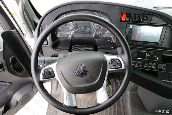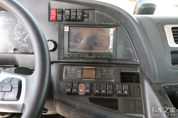 中控台设计风格也继承了汕德卡一贯的设计风格,设有大尺寸液晶显示屏,除了带有普通的影音、导航功能以外,据了解,还将带有重汽智能通终端。